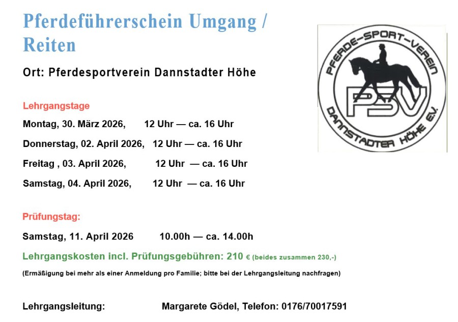 Ihre Anmeldung schicken Sie bitte per Mail an: reiterferien@psvdannstadt.net