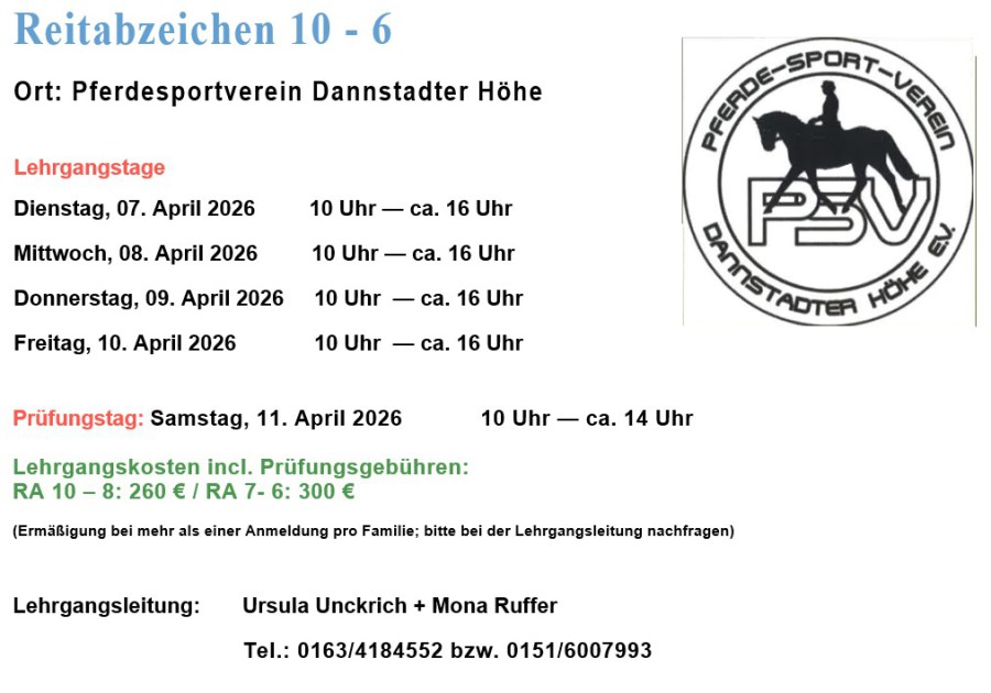 Die Teilnehmeranzahl für die Reitabzeichen und den Pferdeführerschein ist auf maximal 20 Teilnehmer beschränkt